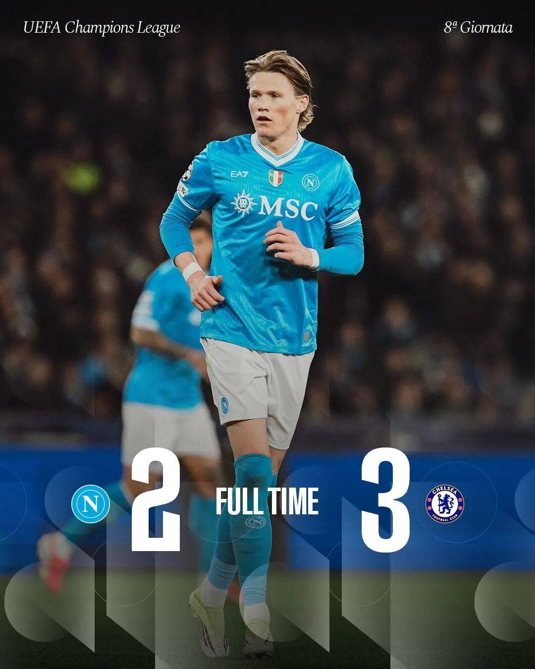 那不勒斯在本周的欧冠联赛中主场2-3不敌切尔西最终连附加赛资格都没捞到,相比输给尤文图斯的首发阵容,奥利维拉取代了古铁雷斯。上半场切尔西主罚任意球,人墙中的胡安手球,恩佐费尔南德斯没有浪费点球机会。23岁的维尔加拉随后打入职业生涯处子球扳平比分,霍伊伦德反超比分。不过切尔西的佩德罗表现神勇,下半场巴西人梅开二度。替补登场的切尔西旧将卢卡库曾有机会扳平比分,但他的射门被桑切斯扑出。那不勒斯成为四支意甲球队中唯一无缘附加赛的球队,意甲卫冕冠军颜面扫地。那不勒斯近期状态糟糕,上轮0-3惨败给尤文图斯后排名跌至第四。